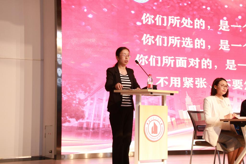 伴随着庄严的国歌声,开学典礼拉开帷幕。2020年度兰州理工大学师德标兵曹睿教授致辞并代表全体教师欢迎新同学。她用亲切的语气、通俗的话语对同学们谆谆教导——站在中国几何版图中心兰州,怀揣梦想与希望,选择奋斗的青春。同学们所处的是一个日新月异的时代,所选的是一片奋进求是的热土,面对的是一个焕然一新的角色,面对未知且具有挑战的未来,她告诉同学们不必紧张、不要焦虑、不用迷茫。最后,曹睿教授殷切地希望同学们的奋斗为青春唱响,乘风而起、绽放青春,谱写无悔华章。