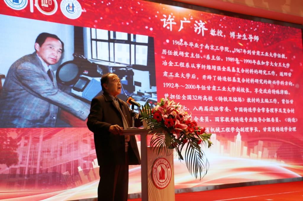 退休教师代表许广济教授结合自己在工大教书育人、管理服务的经历,带领大家重温了改革开放之后兰州理工大学的飞速发展、师资的扩大、学生的扩招、西校区的开发以及历任校长在任期间对兰州理工大学做出的贡献等一幕幕鲜活的学校历史。对于材料学院的发展,他提出三点建议:一是青年教师要瞄准科技前沿技术,加强基础理论知识的更新;二是加强科研队伍的建设,各专业教师有机组合形成科研团队;三是要加强科研成果转化工作,推进科技成果的产业化。