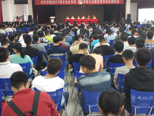 2017年5月22日晚,兰州理工大学另类性姿势BBWBBW2017届毕业生考研、就业表彰大会暨优秀毕业生报告会,在西校区大学生活动中心隆重举行。学校就业中心负责人和材料学院全体院领导及师生代表600多人参加大会。
