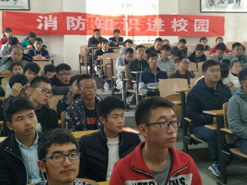 秋风习习,已经到了深秋季节,美丽的银杏已经落下,只剩下易燃的枯树落叶。此时正是易发火灾的时节,为了同学们的安全,材料学院特请龚家湾消防中队的官兵来为我院同学传授消防知识。 理论是行动的基础,消防官兵们先开设讲堂为大家简单介绍消防逃生知识以及灭火器的类型及使用方法,随后简单介绍了他们在深入火场使用的装备。在浓烟滚滚的火场,空气中弥漫着致死的烟雾,消防官兵必须带上呼吸交换器进入火场进行灭火作业。灰色厚重的避火服有别于大家印象中红色的避火服,一位同学上场试穿体验。在同学身上显得臃肿的避火服令人忍俊不禁,但这其貌不扬的避火服却是消防战士们的生命服!在火光闪烁中,这最好的“战友”是他们重要的的依靠,保护他们免受高温的炙烤,安全进出火场进行作业。在向同学们讲诉必要的理论后,为了避免纸上谈兵,消防官兵们到室外演示了灭火器的正确使用方法。随后模拟逃生,在较高楼层让同学们跳下气垫。让同学们身体验逃生并掌握特殊的逃生技巧。