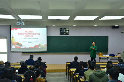 杨莉教授以“奋力开创新时代中国特色社会主义美好未来”为题,深入浅出的讲解了十九大报告精神,带领大家发掘并学习“十九大精神”的真正内涵。