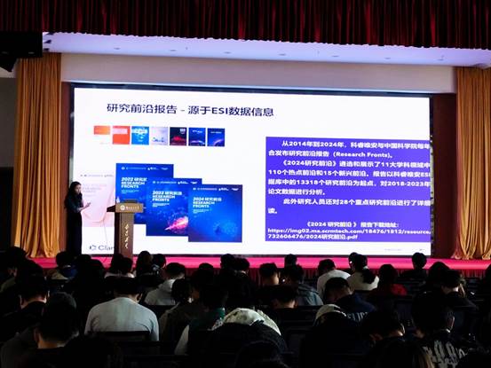 报告会紧密围绕材料科学与工程等重点学科发展需求,以双主题板块展开深度研讨。科睿唯安学术研究事业部解决方案顾问陈元方立足国际前沿,系统阐释SCI/ESI/InCites三大核心工具在学科分析中的创新应用场景,通过ESI指标体系深度解析、对标院校学科发展数据可视化对比、我校材料学科发展态势多维度研判,结合科研人员学术影响力提升的策略模型,为学科建设提供了可落地的数据支撑与实践路径。